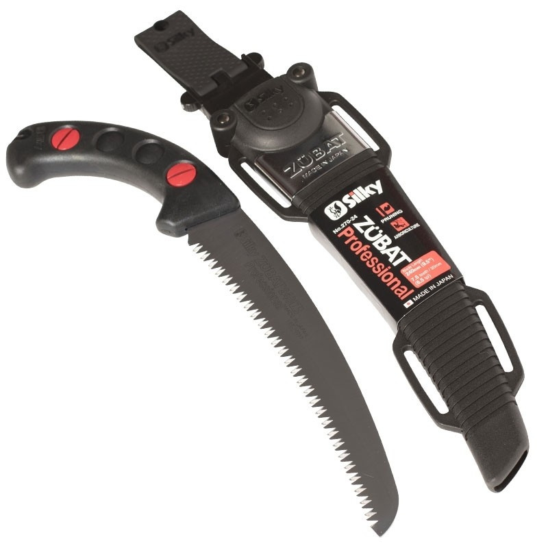 SILKY Zubat Professional är en hölstersåg med bågformat sågblad. Gummiklätt skaft med bra grepp – den nya klacken på handtaget ger ett säkert grepp. Specialdesignat hölster av polypropylen som gör att sågen smidigt glider/rullar ner. Hölstret har även ett avtagbart och ledat bältesfäste.