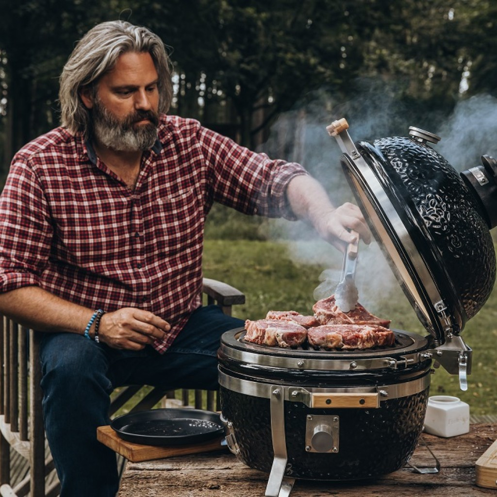 - Guru-Ready: Alla keramiska grillar av Pro Series 2.0 äger redan en fast integrerad BBQ Guru-adapter. Inga monteringsadapterplattor mer nödvändiga