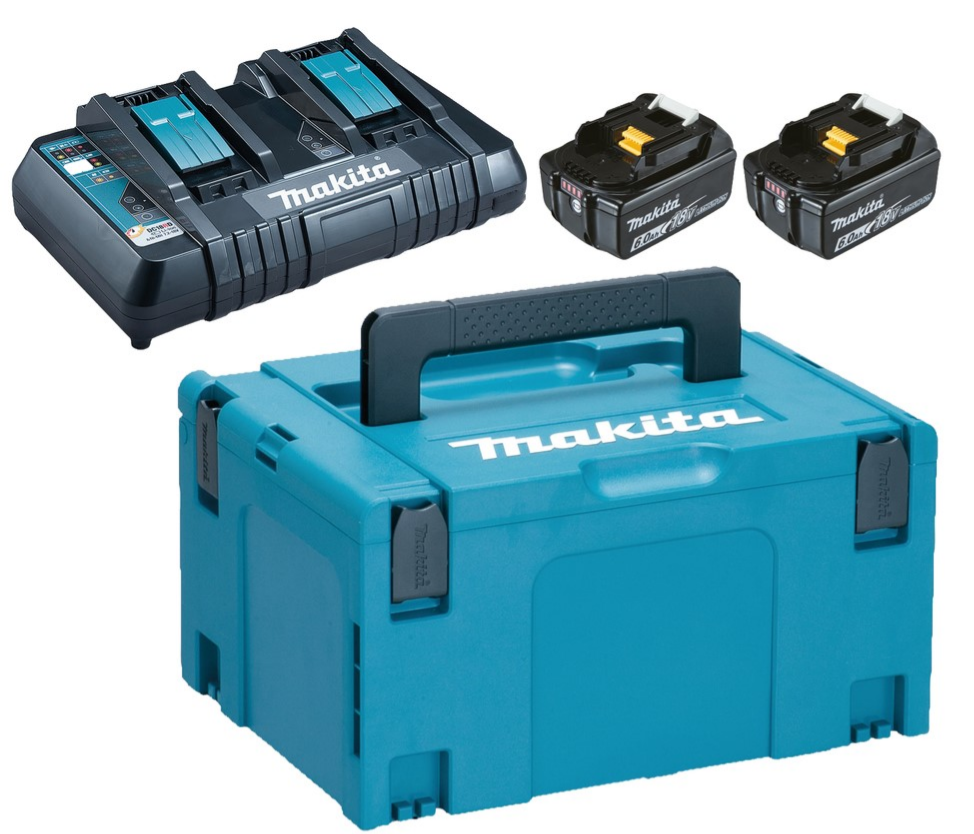 Li-ion • 18V • 6,0 Ah2 st 6,0 Ah Li-ion batterier, 1 st tvåportsladdare samt MAKPAC.