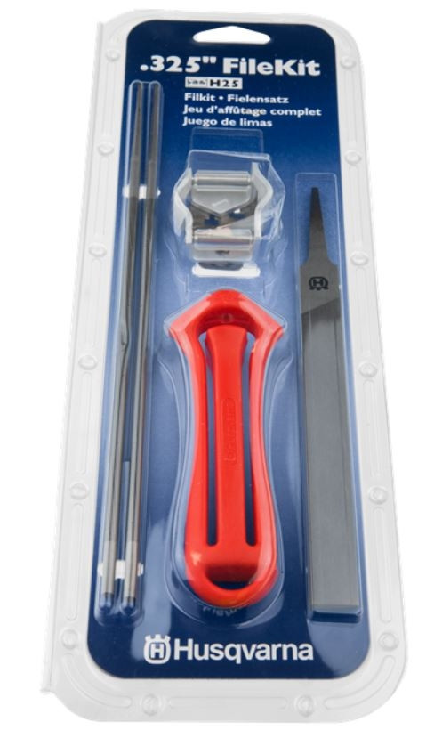 Komplett med handtag, kombimall*, 2 rundfilar och 1 flatfil. Med filmallen erhålls rätt filning av skärtand och underställning.