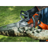 Den här motorsågen ingår i Husqvarnas flexibla 36 V BLi-X-system, vilket innebär att ett batteri kan användas till flera verktyg.