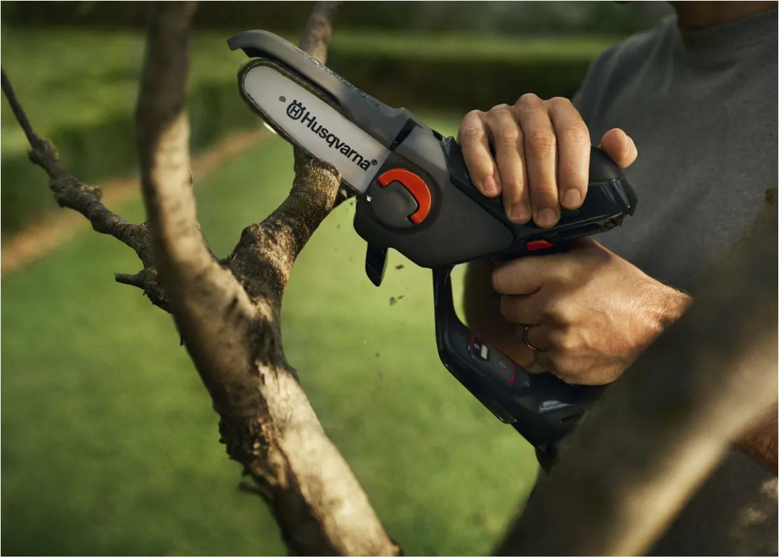 Kompakt handhållen batterisåg, perfekt för att beskära träd, kapa tunnare grenar och för mindre snickeriarbeten. Denna beskärningssåg robust nog att enkelt kapa 75 mm tjocka grenar. Utbyte av svärd och kedja sker enkelt utan verktyg. Sågen har ett mjukt handtag som ger att fast grepp. Förvaras enkelt med den medföljande kroken och är en del av 18V POWER FOR ALL-batterisystemet.