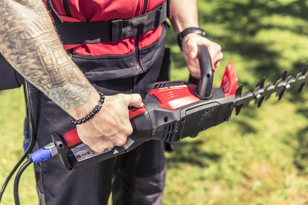 Med den oberoende batteridrivna häcksaxen på bara 3,6 kg (utan batteri) har du en stor aktionsradie utan trassliga kablar och kan inte skära av en kabel av misstag. Den lätta, arbetsbesparande hanteringen i alla arbetspositioner kan göras tack vare handtaget, som är ställbart i 3 steg - för att skona handlederna och en fördel, särskilt vid kontinuerligt arbete.