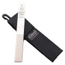 Dubbelsidigt svenskt diamantbryne. Uppbyggt med tre funktioner. En sida grov (60 mikron) en sida fin (30 mikron) diamantyta, samt skärpstål. För skärpning av sekatörer, knivar med mera. Ett smidigt hölster medföljer. Längd 170 mm. Tjocklek endast 3 mm.