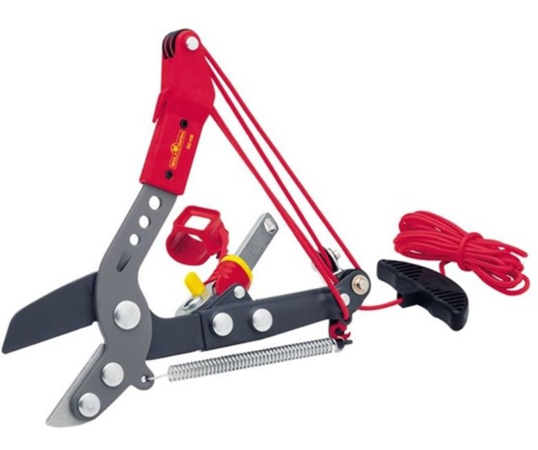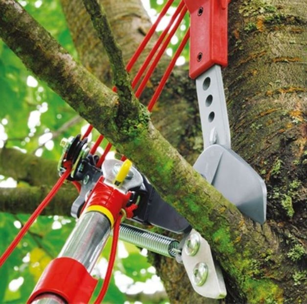 Med hjälp av ett teleskopskaft kan man beskära sina träd upp till 5,5 meter ovanför marken utan stege. Med hjälp av den medföljande snörguiden hålls snörlinan på plats med man klipper och förflyttar sig runt trädet.