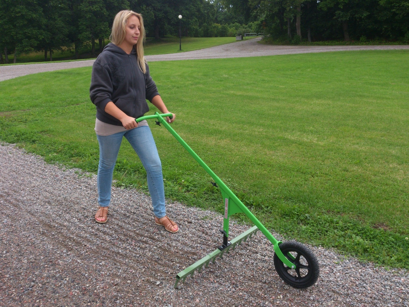Gångkrattan är ett redskap som sätts på Hjulhackan och används för att få snygga grusytor i trädgårdar, parker och kyrkogårdar och liknande. Nytt tillverkningssätt har gjort det möjligt att göra runda spetsar vilket ger en ökad ogräseffekt och distinktare spår.