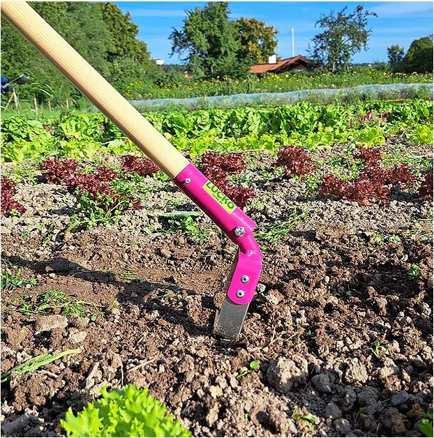 Detta trädgårdsredskap är ledat så att man kan jobba både framåt och bakåt, vilket blir tidseffektivt om en har lite större ytor att rensa ogräs i.