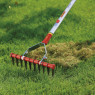 För luftning av gräsmattan. De vassa skären tar bort mossa och gammalt gräs i gräsmattan utan problem. Med 30 cm arbetsbredd och pendlande skär. Utbytbara reservdelar finns att tillgå.