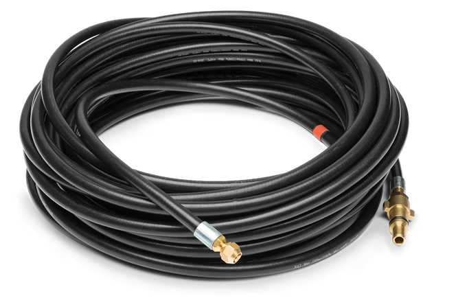 Den flexibla självmatande rengöringsslangen är perfekt när du rengör rör, igensatta avlopp eller takrännor. De två munstyckena som medföljer möjliggör effektiv rengöring av rör med både små och stora diametrar.