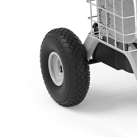 2-kammarsystemet ger optimal snittkvalitet, hög effektivitet och lång livslängd. Det möjliggör att du kan mata in olika material i de två olika inmatningstrattarna som är inbyggda i kompostkvarnen – antingen med hårt grenmaterial eller mjuka växtrester. Om du behöver pausa arbetet, använd låsskruven på kåpan så stannar kniven omedelbart. One Click/One Turn säkerhetsbrytaren stoppar motorn när den vrids. Med de stora luftfyllda hjulen och den breda hjulbasen är det ingen konst att flytta runt maskinen.