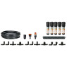 Ett kit, komplett med instruktioner, för att skapa ett underjordiskt mikrobesprutningssystem på egen hand för ett litet grönt utrymme (upp till 50 kvm). Innehåller en 1/2" huvudslang, kopplingar, pop-up mikrosprinkler, krananslutning och avloppsventil. Den kan anslutas med en batteridämpare för att enkelt hantera bevattningstider och frekvenser, och det kan utökas om så önskas med Colibrì Systemkomponenter för att enkelt skapa ett skräddarsyddat system för större trädgårdar.