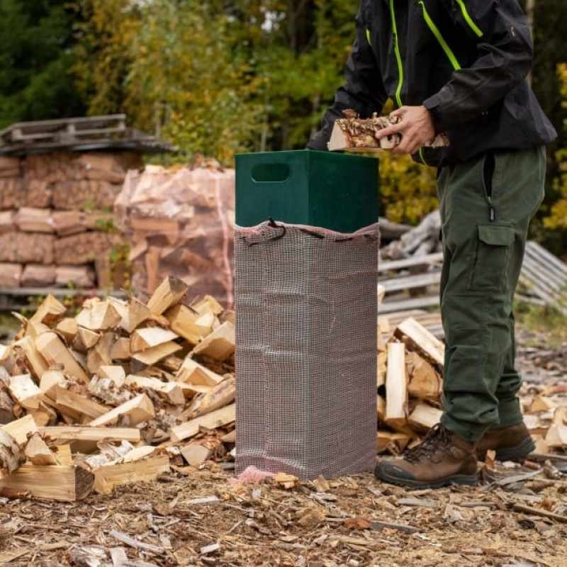 UV-stabiliserad säck av hög kvalité för engångsanvändning. Veden torkar bra och kvalitén på veden ser du enkelt genom nätet. Samtidigt förenklar man hantering och transport. Välj mellan flera olika stativ för enkel och snabb packning.