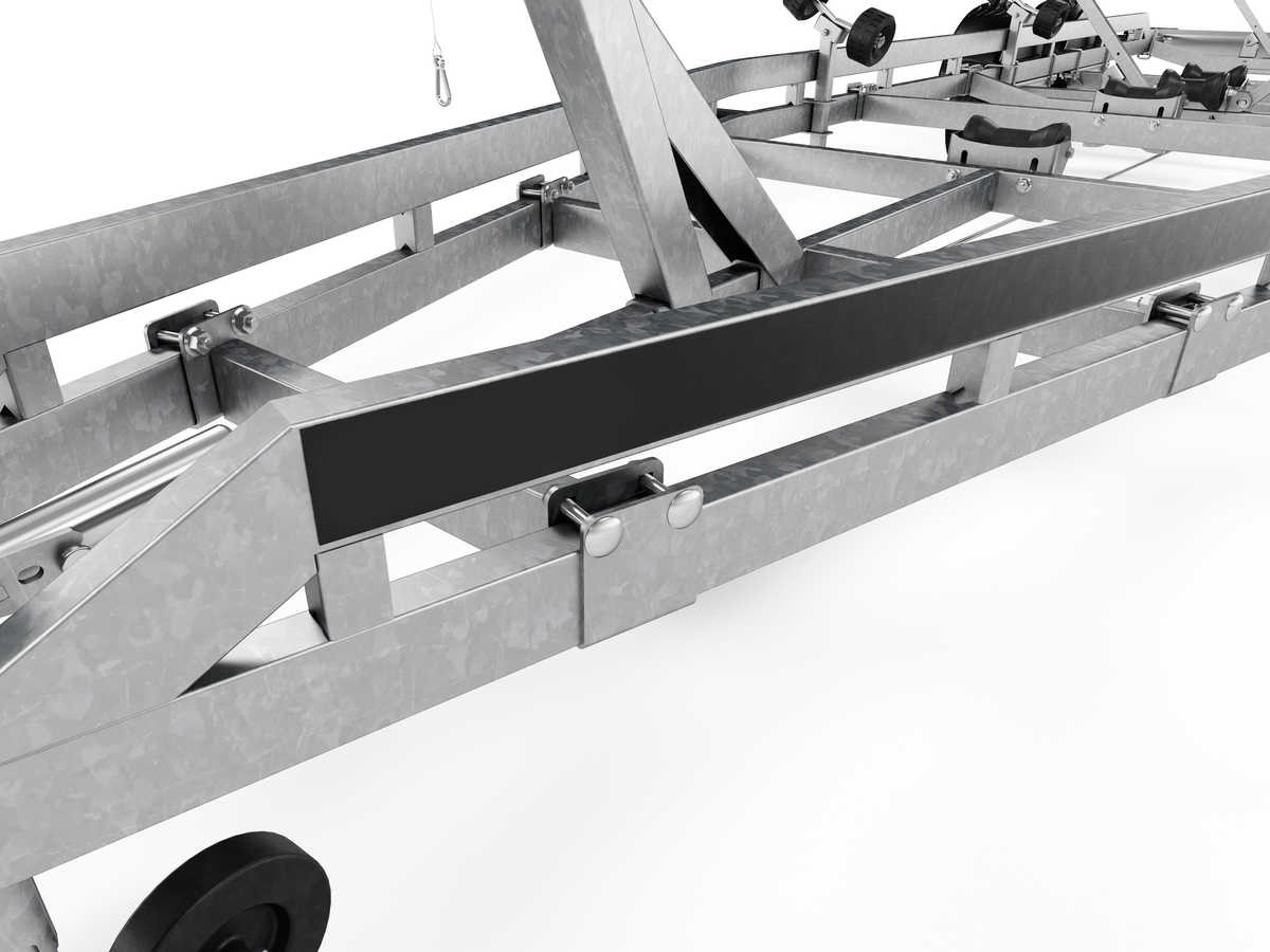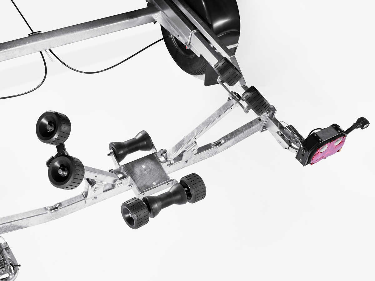 Båtupptagningsvagn för båtar upp till 22 fot. Utrustad med två förstärkta självjusterande vaggor, justerbara förstärkta kölrullar av X-line-kvalitet för enkel anpassning till din båt. Varmgalvaniserat chassi för lång hållbarhet. Vinsch och vinschtorn som är enkelt att justera, vinschtornet är även utrustat med en extra säkerhetsvajer för användning vid transport. Båttrailern på bilderna kan vara extrautrustad.
