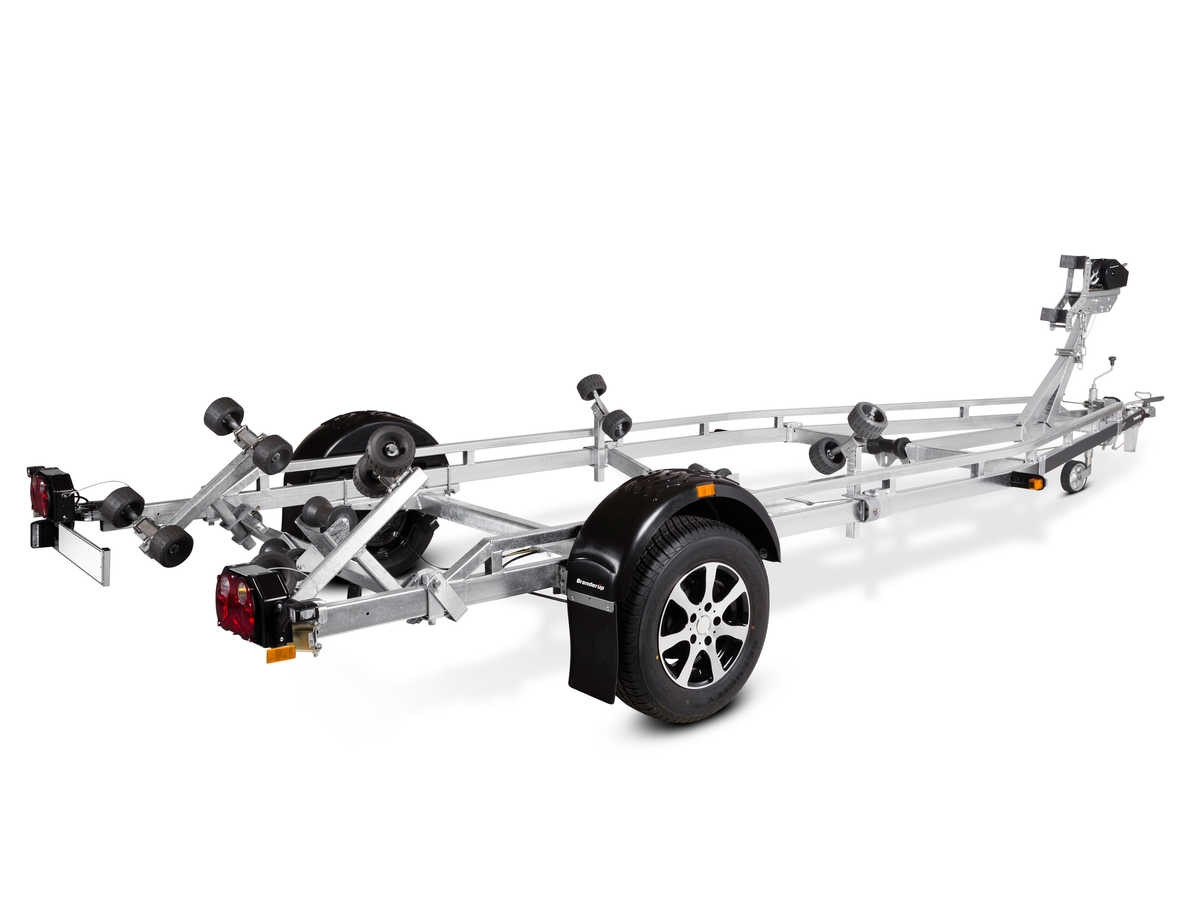 Bromsad trailer för båtar upp till 22 fot. Utrustad med V-format, svetsat och förstärkt chassi och väldigt goda köregenskaper. X-line-kvalitetsrullar med låg inverkan på båtens skrov. Tippbar superrullsvagga baktill, förstärkta kölrullar och justerbara dubbla sidorullar för enkel anpassning till din båt. Varmgalvaniserat chassi för lång hållbarhet. Elen är helt skyddad i båttrailerns chassi. Vattentäta hjullager förlänger livstiden. Helskyddad vinsch och vinschtorn som är enkelt att justera, vinschtornet är även utrustat med en extra säkerhetsvajer för användning vid transport. Smidig och vikbar belysning vilket gör både av- och pålastning väldigt enkel. Båttrailern på bilden kan vara extrautrustad.
